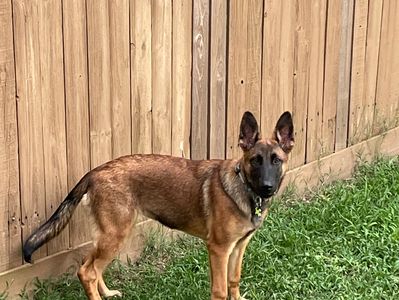 I was born on March 31, 2025—which officially makes me the big sister around here (even if it’s just by a couple of weeks). I’m part Belgian Malinois and part German Shepherd—so basically, I’m built for brains, beauty, and boundless energy!
